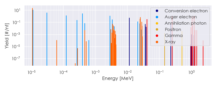 Spectra source: ICRP Publication 107: Nuclear Decay Data for Dosimetric Calculations. Ann. ICRP 2008, 38 (3).