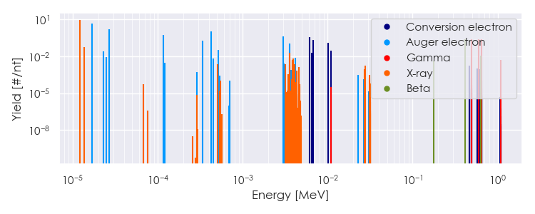 Spectra source: ICRP Publication 107: Nuclear Decay Data for Dosimetric Calculations. Ann. ICRP 2008, 38 (3).