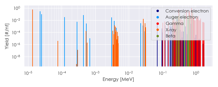 Spectra source: ICRP Publication 107: Nuclear Decay Data for Dosimetric Calculations. Ann. ICRP 2008, 38 (3).
