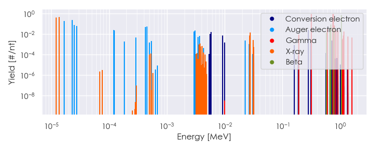 Spectra source: ICRP Publication 107: Nuclear Decay Data for Dosimetric Calculations. Ann. ICRP 2008, 38 (3).