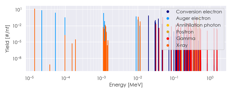 Spectra source: ICRP Publication 107: Nuclear Decay Data for Dosimetric Calculations. Ann. ICRP 2008, 38 (3).
