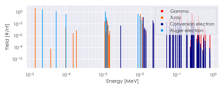 Spectra source: ICRP Publication 107: Nuclear Decay Data for Dosimetric Calculations. Ann. ICRP 2008, 38 (3).