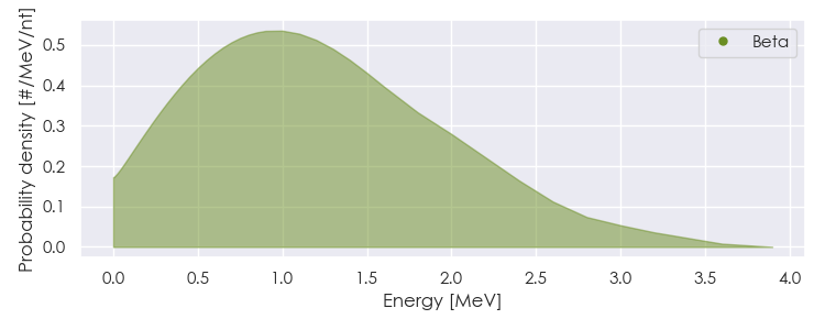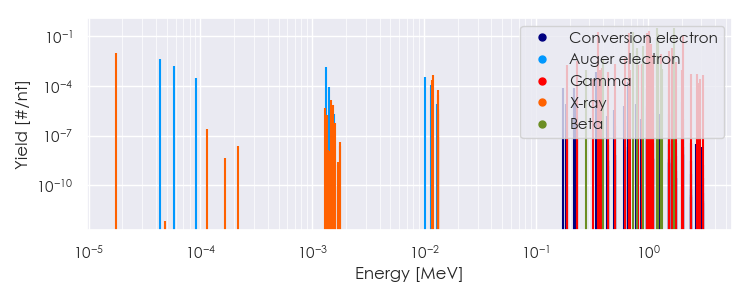 Spectra source: ICRP Publication 107: Nuclear Decay Data for Dosimetric Calculations. Ann. ICRP 2008, 38 (3).