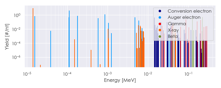 Spectra source: ICRP Publication 107: Nuclear Decay Data for Dosimetric Calculations. Ann. ICRP 2008, 38 (3).
