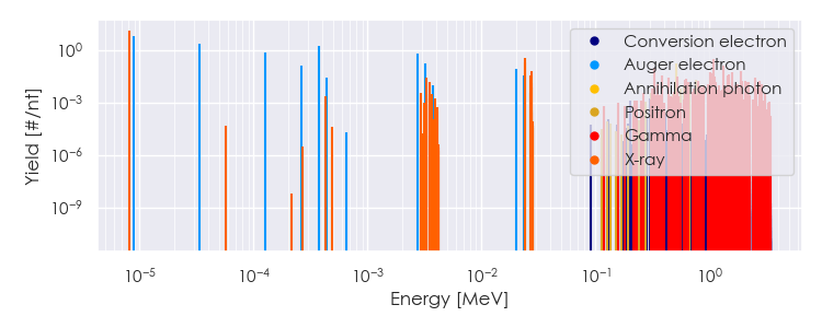 Spectra source: ICRP Publication 107: Nuclear Decay Data for Dosimetric Calculations. Ann. ICRP 2008, 38 (3).
