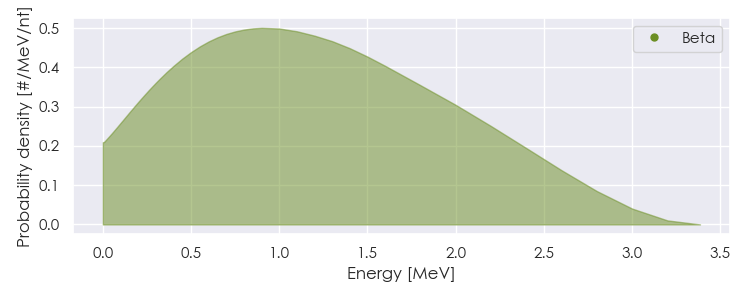Spectra source: ICRP Publication 107: Nuclear Decay Data for Dosimetric Calculations. Ann. ICRP 2008, 38 (3).