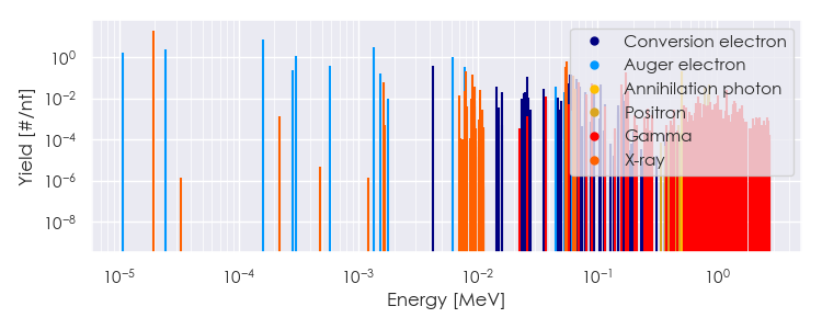 Spectra source: ICRP Publication 107: Nuclear Decay Data for Dosimetric Calculations. Ann. ICRP 2008, 38 (3).