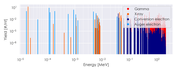 Spectra source: ICRP Publication 107: Nuclear Decay Data for Dosimetric Calculations. Ann. ICRP 2008, 38 (3).