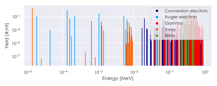Spectra source: ICRP Publication 107: Nuclear Decay Data for Dosimetric Calculations. Ann. ICRP 2008, 38 (3).