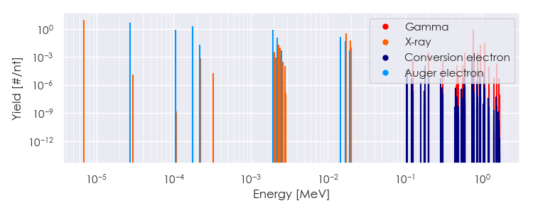 Spectra source: ICRP Publication 107: Nuclear Decay Data for Dosimetric Calculations. Ann. ICRP 2008, 38 (3).