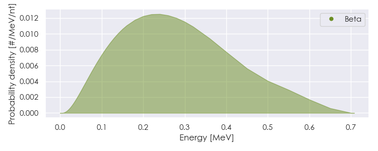 Spectra source: ICRP Publication 107: Nuclear Decay Data for Dosimetric Calculations. Ann. ICRP 2008, 38 (3).