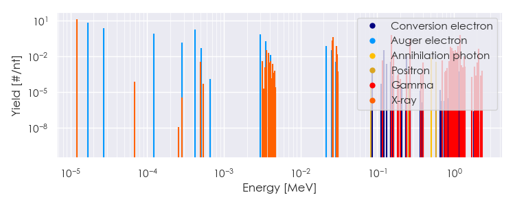 Spectra source: ICRP Publication 107: Nuclear Decay Data for Dosimetric Calculations. Ann. ICRP 2008, 38 (3).