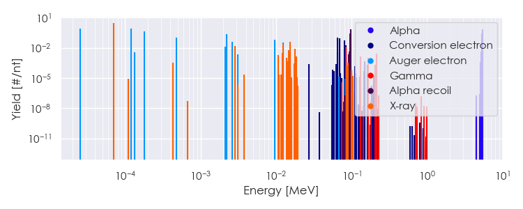 Spectra source: ICRP Publication 107: Nuclear Decay Data for Dosimetric Calculations. Ann. ICRP 2008, 38 (3).