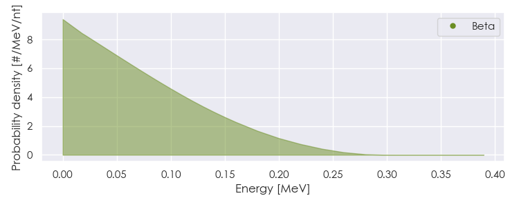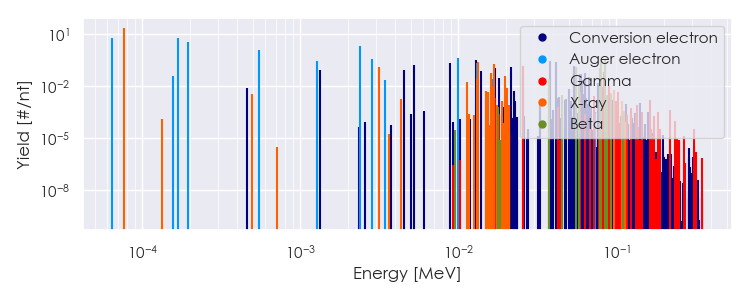 Spectra source: ICRP Publication 107: Nuclear Decay Data for Dosimetric Calculations. Ann. ICRP 2008, 38 (3).