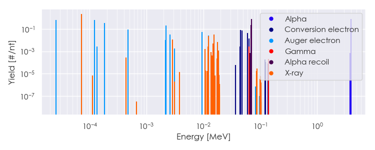 Spectra source: ICRP Publication 107: Nuclear Decay Data for Dosimetric Calculations. Ann. ICRP 2008, 38 (3).