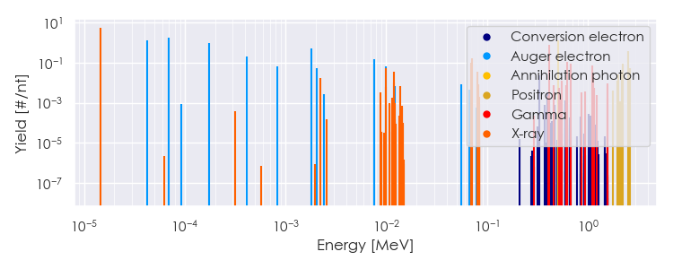Spectra source: ICRP Publication 107: Nuclear Decay Data for Dosimetric Calculations. Ann. ICRP 2008, 38 (3).