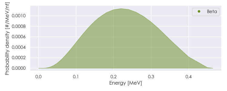 Spectra source: ICRP Publication 107: Nuclear Decay Data for Dosimetric Calculations. Ann. ICRP 2008, 38 (3).