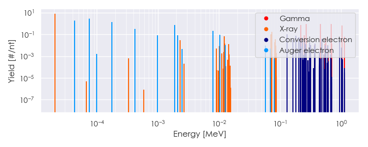 Spectra source: ICRP Publication 107: Nuclear Decay Data for Dosimetric Calculations. Ann. ICRP 2008, 38 (3).