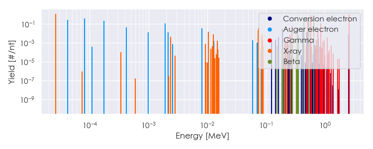 Spectra source: ICRP Publication 107: Nuclear Decay Data for Dosimetric Calculations. Ann. ICRP 2008, 38 (3).