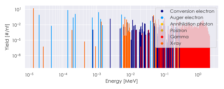 Spectra source: ICRP Publication 107: Nuclear Decay Data for Dosimetric Calculations. Ann. ICRP 2008, 38 (3).