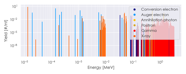 Spectra source: ICRP Publication 107: Nuclear Decay Data for Dosimetric Calculations. Ann. ICRP 2008, 38 (3).