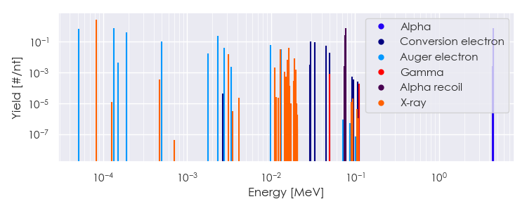 Spectra source: ICRP Publication 107: Nuclear Decay Data for Dosimetric Calculations. Ann. ICRP 2008, 38 (3).