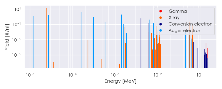 Spectra source: ICRP Publication 107: Nuclear Decay Data for Dosimetric Calculations. Ann. ICRP 2008, 38 (3).