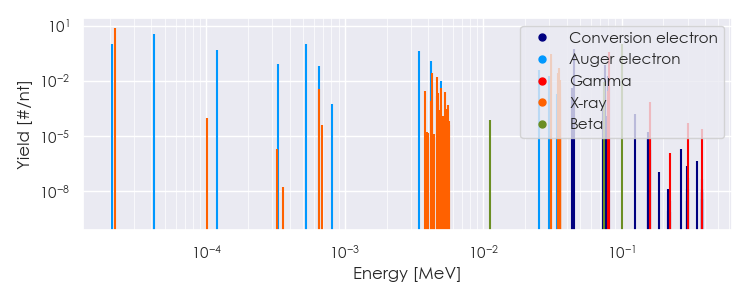 Spectra source: ICRP Publication 107: Nuclear Decay Data for Dosimetric Calculations. Ann. ICRP 2008, 38 (3).