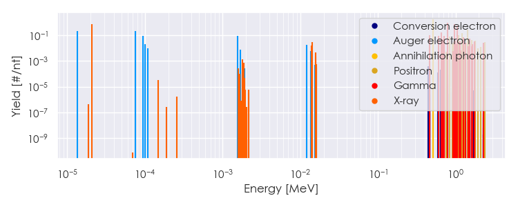 Spectra source: ICRP Publication 107: Nuclear Decay Data for Dosimetric Calculations. Ann. ICRP 2008, 38 (3).