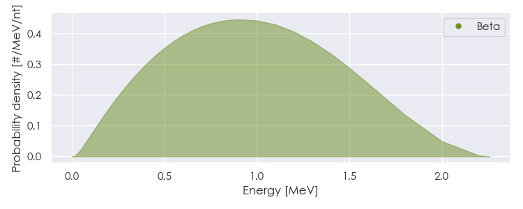 Spectra source: ICRP Publication 107: Nuclear Decay Data for Dosimetric Calculations. Ann. ICRP 2008, 38 (3).