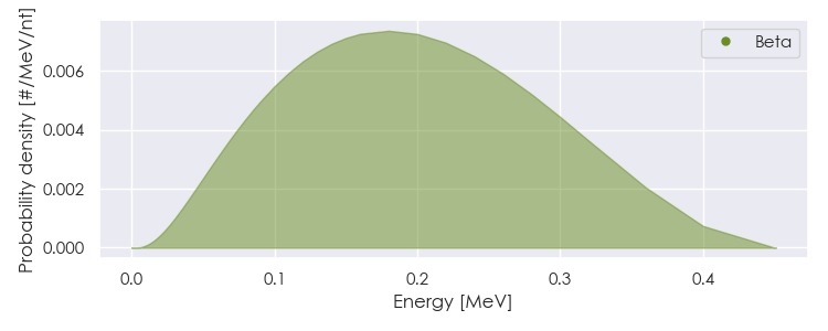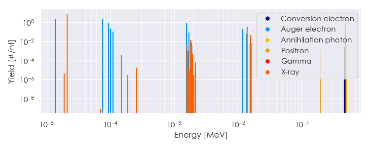Spectra source: ICRP Publication 107: Nuclear Decay Data for Dosimetric Calculations. Ann. ICRP 2008, 38 (3).