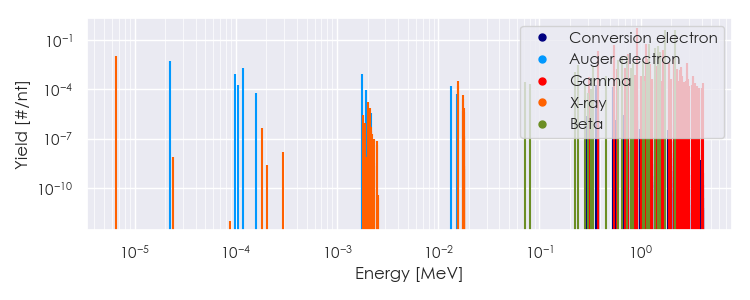Spectra source: ICRP Publication 107: Nuclear Decay Data for Dosimetric Calculations. Ann. ICRP 2008, 38 (3).
