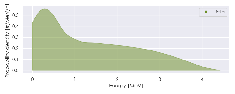 Spectra source: ICRP Publication 107: Nuclear Decay Data for Dosimetric Calculations. Ann. ICRP 2008, 38 (3).