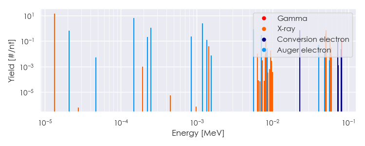 Spectra source: ICRP Publication 107: Nuclear Decay Data for Dosimetric Calculations. Ann. ICRP 2008, 38 (3).