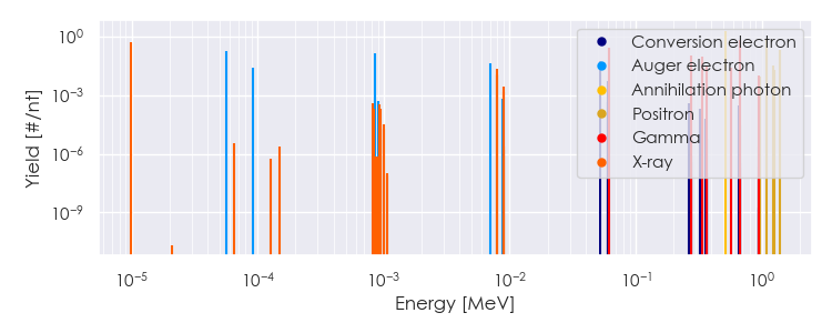 Spectra source: ICRP Publication 107: Nuclear Decay Data for Dosimetric Calculations. Ann. ICRP 2008, 38 (3).