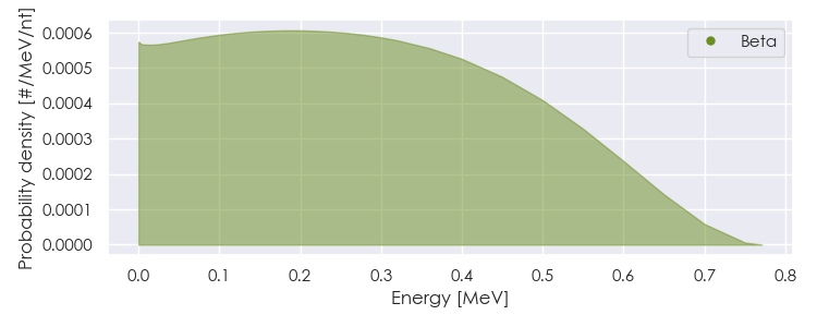 Spectra source: ICRP Publication 107: Nuclear Decay Data for Dosimetric Calculations. Ann. ICRP 2008, 38 (3).