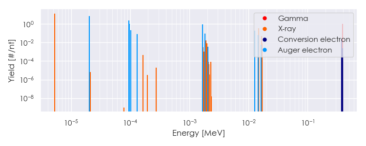 Spectra source: ICRP Publication 107: Nuclear Decay Data for Dosimetric Calculations. Ann. ICRP 2008, 38 (3).