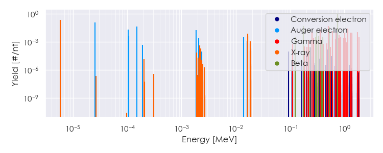 Spectra source: ICRP Publication 107: Nuclear Decay Data for Dosimetric Calculations. Ann. ICRP 2008, 38 (3).