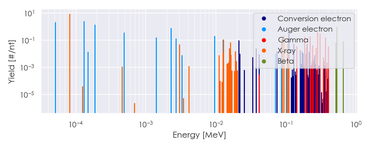 Spectra source: ICRP Publication 107: Nuclear Decay Data for Dosimetric Calculations. Ann. ICRP 2008, 38 (3).