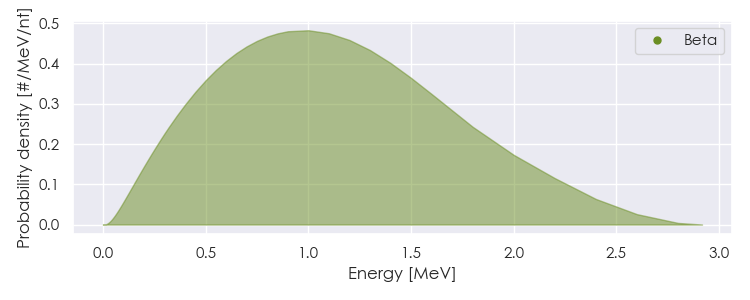 Spectra source: ICRP Publication 107: Nuclear Decay Data for Dosimetric Calculations. Ann. ICRP 2008, 38 (3).