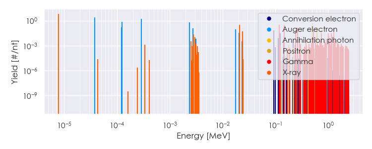 Spectra source: ICRP Publication 107: Nuclear Decay Data for Dosimetric Calculations. Ann. ICRP 2008, 38 (3).
