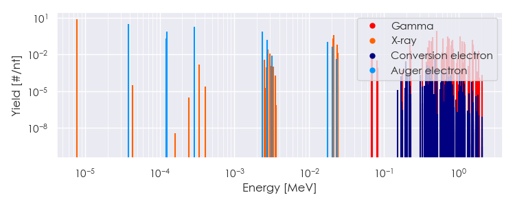 Spectra source: ICRP Publication 107: Nuclear Decay Data for Dosimetric Calculations. Ann. ICRP 2008, 38 (3).