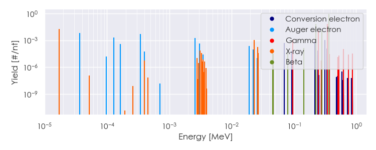 Spectra source: ICRP Publication 107: Nuclear Decay Data for Dosimetric Calculations. Ann. ICRP 2008, 38 (3).