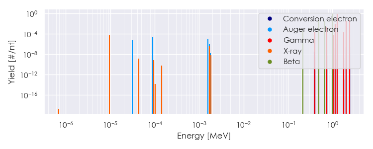 Spectra source: ICRP Publication 107: Nuclear Decay Data for Dosimetric Calculations. Ann. ICRP 2008, 38 (3).