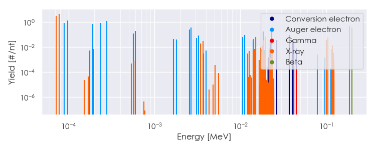 Spectra source: ICRP Publication 107: Nuclear Decay Data for Dosimetric Calculations. Ann. ICRP 2008, 38 (3).