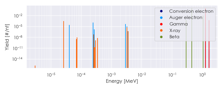 Spectra source: ICRP Publication 107: Nuclear Decay Data for Dosimetric Calculations. Ann. ICRP 2008, 38 (3).