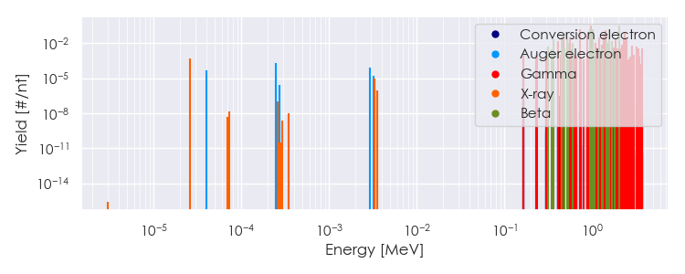 Spectra source: ICRP Publication 107: Nuclear Decay Data for Dosimetric Calculations. Ann. ICRP 2008, 38 (3).