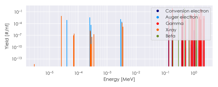 Spectra source: ICRP Publication 107: Nuclear Decay Data for Dosimetric Calculations. Ann. ICRP 2008, 38 (3).