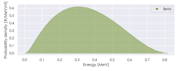 Spectra source: ICRP Publication 107: Nuclear Decay Data for Dosimetric Calculations. Ann. ICRP 2008, 38 (3).