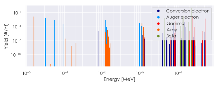 Spectra source: ICRP Publication 107: Nuclear Decay Data for Dosimetric Calculations. Ann. ICRP 2008, 38 (3).